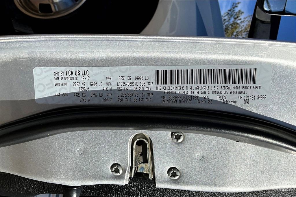 Bright Silver Metallic Clearcoat 2018 Ram 3500 Big Horn 4WD 6-Speed Automatic Cummins 6.7L I6 Turbodiesel