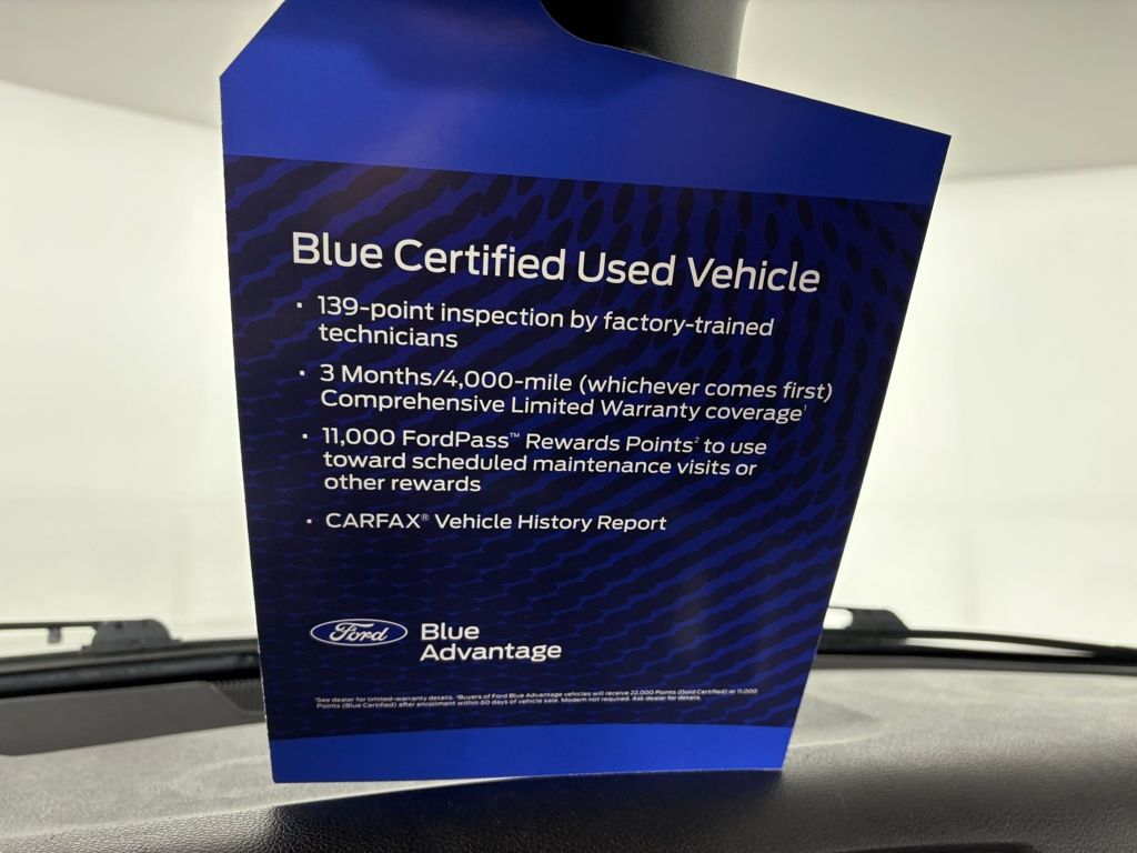139 point vehicle inspection performed by an ASE Certified technician 3-month/4,000-mile Comprehensive Limited Warranty coverage that is fully competitive with other online retailers Blue Certification includes 11,000 FordPass Rewards Points For other manufacturers not listed above, Comprehensive Coverage is provided for 3 months or 4,000 miles, whichever comes first, from the signature date of the Ford Blue Advantage â" Blue Certified purchase. Comprehensive Limited Warranty covering 1,000+ components Travel expense reimbursement Rental car reimbursement SiriusXM 3 month tria. Recent Arrival!
