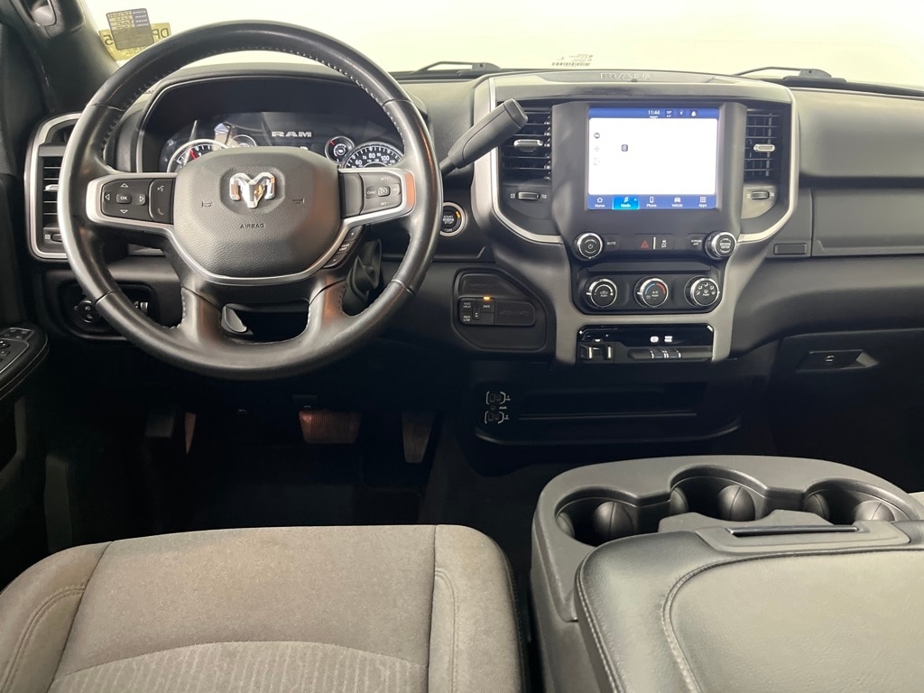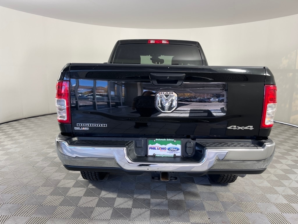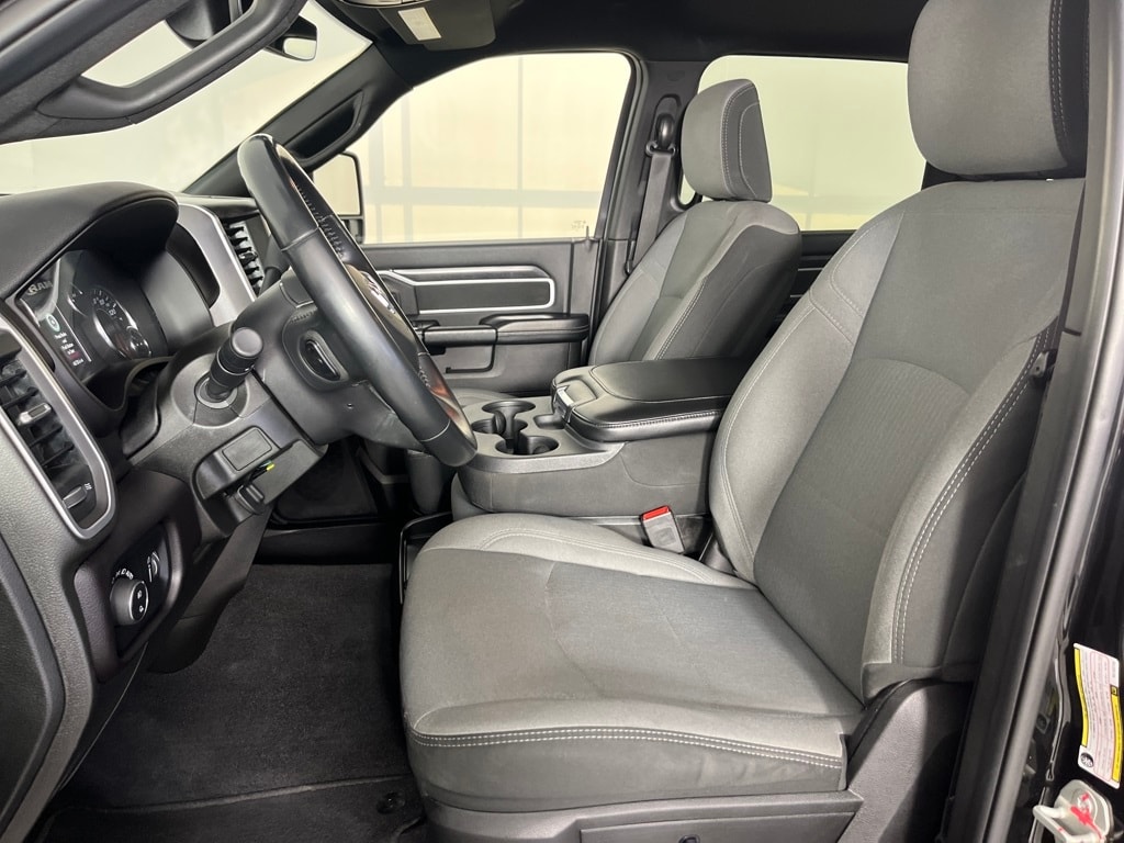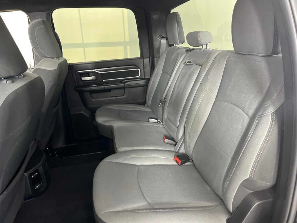 ENGINE: 6.7L I6 CUMMINS TURBO DIESEL Selective Catalytic Reduction (Urea), Dual 730 Amp Maintenance Free Batteries, Cummins Turbo Diesel Badge, Heavy Duty Engine Cooling, Tow Hooks, Diesel Exhaust Brake, Supplemental Heater, Front Bumper Sight Shields, Capless Fuel Fill w/o Discriminator, DIESEL GRAY/BLACK, PREMIUM CLOTH 40/20/40 BENCH SEAT Storage Tray, Rear 60/40 Folding Seat, Front Armrest w/Cupholders, Remote USB Port - Charge Only, Front Center Seat Cushion Storage, Manual Adjust 4-Way Front Passenger Seat, Power Adjust 8-Way Driver Seat, Front Seat Back Map Pockets, Power 2-Way Driver Lumbar Adjust, CHROME FLAT CAB-LENGTH SIDE STEPS, LEVEL 1 EQUIPMENT GROUP Google Android Auto®, For Details, Visit DriveUconnect.com, For More Info, Call 800-643-2112, Leather Wrapped Steering Wheel, Rear Dome w/On/Off Switch Lamp, Front Fog Lamps, Glove Box Lamp, Auto Power-Folding Mirrors, Footwell Courtesy Lamp, 4G LTE Wi-Fi Hot Spot, Mirror Running Lights, Radio: Uconnect 5 W w/8.4 Display, 8.4 Touchscreen Display, Foam Bottle Insert (Door Trim Panel), Wheels: 18 x 8.0 Polished Aluminum, Apple CarPlay®, Big Horn IP Badge, Power Adjustable Convex Aux Mirrors, Forward & Reverse Utility Lights, Locking Lower Glove Box, Selectable Tire Fill Alert, SiriusXM Satellite Radio, Power Heated Fold Telescope Mirrors, Exterior Mirrors w/Supplemental Signals, Steering Wheel Mounted Audio Controls, Exterior Mirrors Courtesy Lamps, Dual Glove, TRANSMISSION: 6-SPEED AUTOMATIC (68RFE). Ram Big Horn with Diamond Black Crystal Pearlcoat exterior and Diesel Gray/Black interior features a Straight 6 Cylinder Engine with 410 HP at 5600 RPM*.