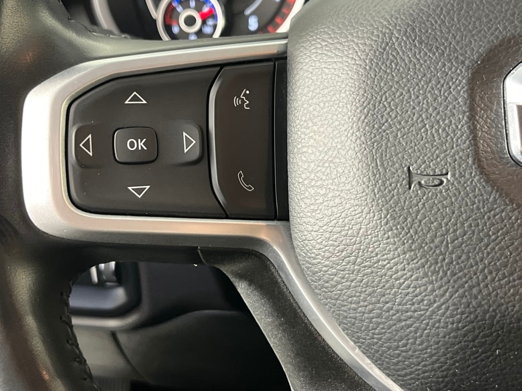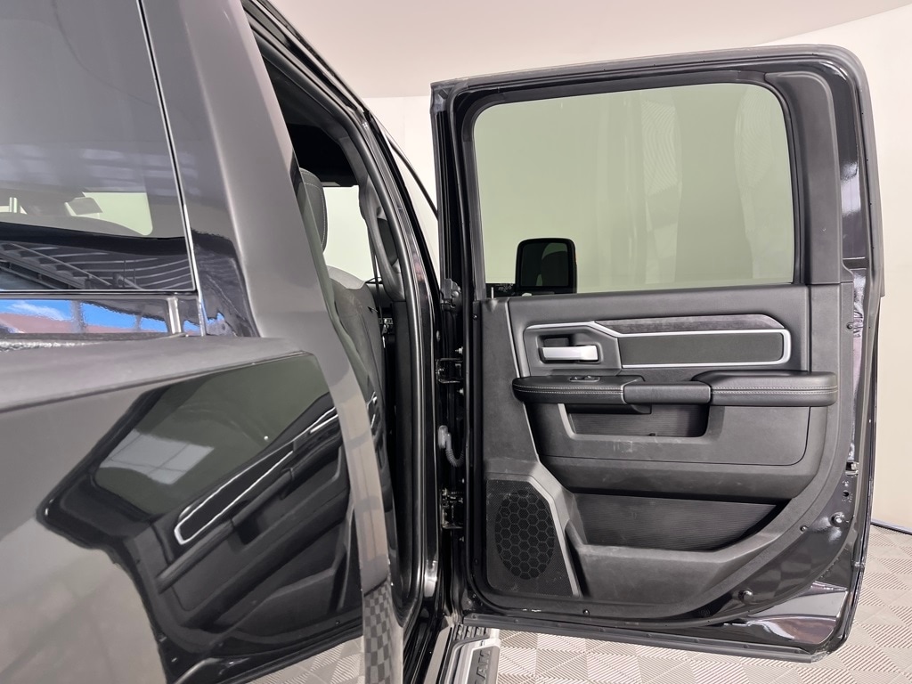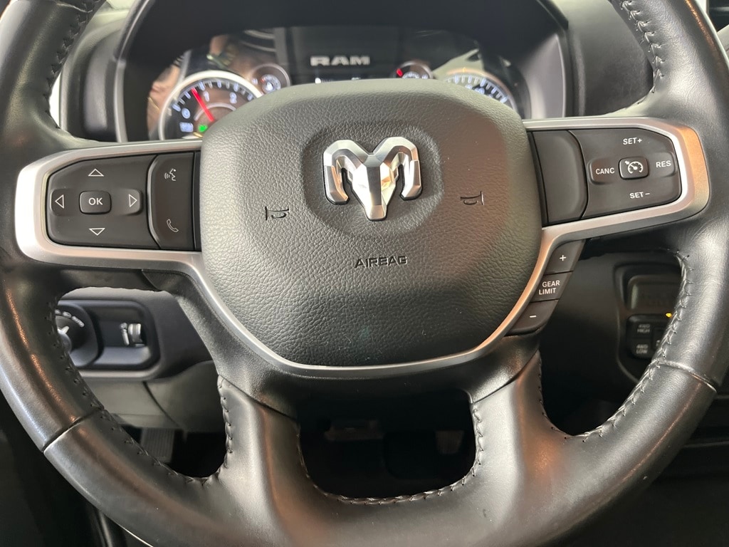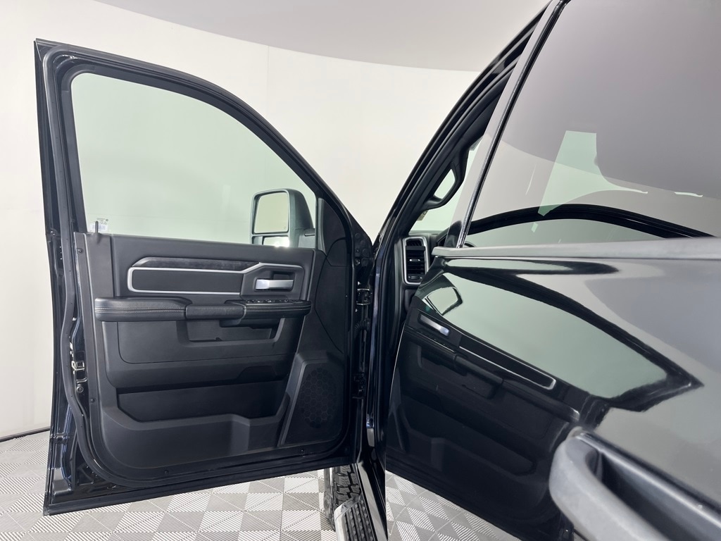 ENGINE: 6.7L I6 CUMMINS TURBO DIESEL Selective Catalytic Reduction (Urea), Dual 730 Amp Maintenance Free Batteries, Cummins Turbo Diesel Badge, Heavy Duty Engine Cooling, Tow Hooks, Diesel Exhaust Brake, Supplemental Heater, Front Bumper Sight Shields, Capless Fuel Fill w/o Discriminator, DIESEL GRAY/BLACK, PREMIUM CLOTH 40/20/40 BENCH SEAT Storage Tray, Rear 60/40 Folding Seat, Front Armrest w/Cupholders, Remote USB Port - Charge Only, Front Center Seat Cushion Storage, Manual Adjust 4-Way Front Passenger Seat, Power Adjust 8-Way Driver Seat, Front Seat Back Map Pockets, Power 2-Way Driver Lumbar Adjust, CHROME FLAT CAB-LENGTH SIDE STEPS, LEVEL 1 EQUIPMENT GROUP Google Android Auto®, For Details, Visit DriveUconnect.com, For More Info, Call 800-643-2112, Leather Wrapped Steering Wheel, Rear Dome w/On/Off Switch Lamp, Front Fog Lamps, Glove Box Lamp, Auto Power-Folding Mirrors, Footwell Courtesy Lamp, 4G LTE Wi-Fi Hot Spot, Mirror Running Lights, Radio: Uconnect 5 W w/8.4 Display, 8.4 Touchscreen Display, Foam Bottle Insert (Door Trim Panel), Wheels: 18 x 8.0 Polished Aluminum, Apple CarPlay®, Big Horn IP Badge, Power Adjustable Convex Aux Mirrors, Forward & Reverse Utility Lights, Locking Lower Glove Box, Selectable Tire Fill Alert, SiriusXM Satellite Radio, Power Heated Fold Telescope Mirrors, Exterior Mirrors w/Supplemental Signals, Steering Wheel Mounted Audio Controls, Exterior Mirrors Courtesy Lamps, Dual Glove, TRANSMISSION: 6-SPEED AUTOMATIC (68RFE). Ram Big Horn with Diamond Black Crystal Pearlcoat exterior and Diesel Gray/Black interior features a Straight 6 Cylinder Engine with 410 HP at 5600 RPM*.