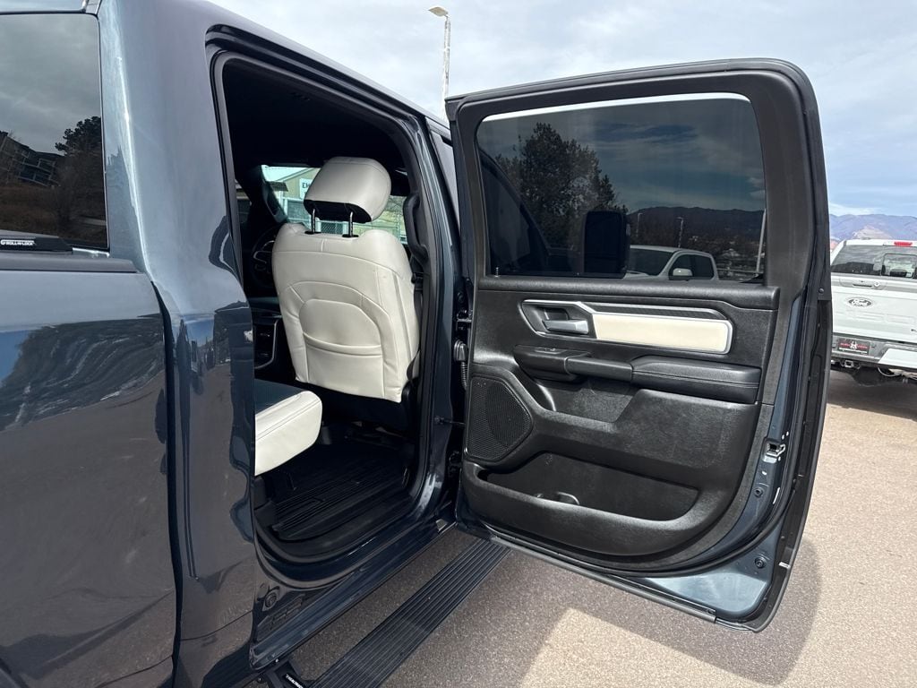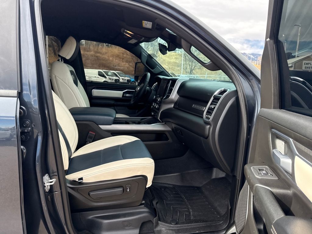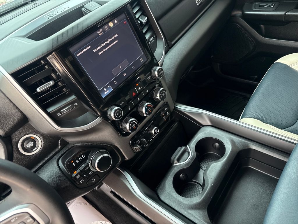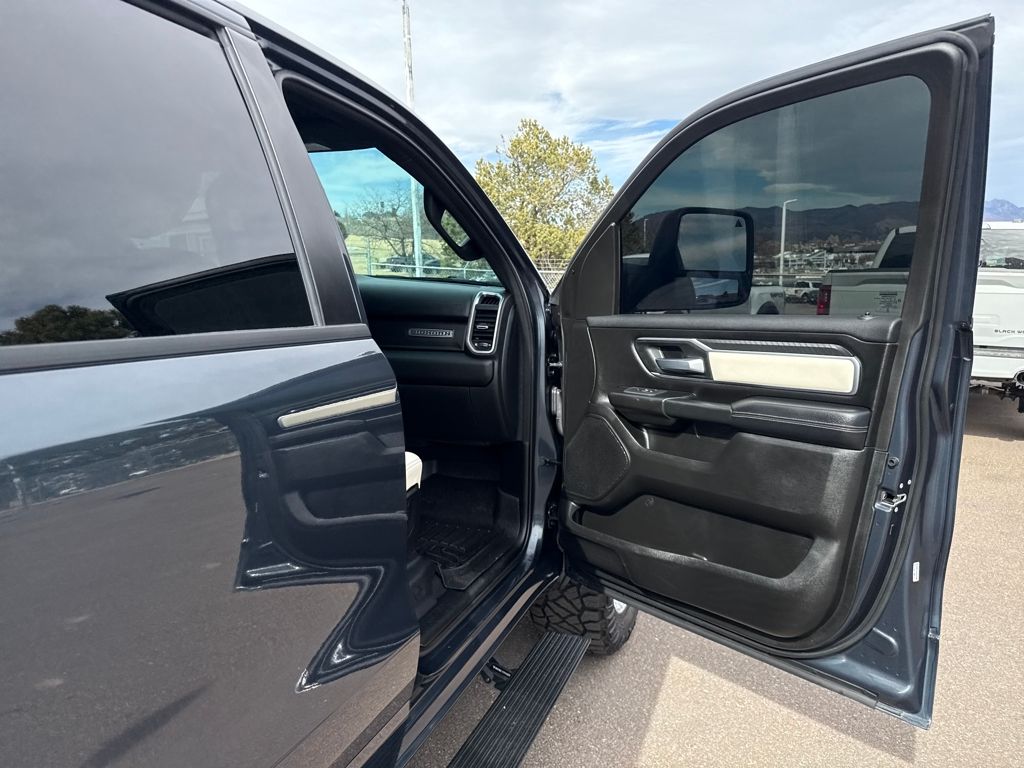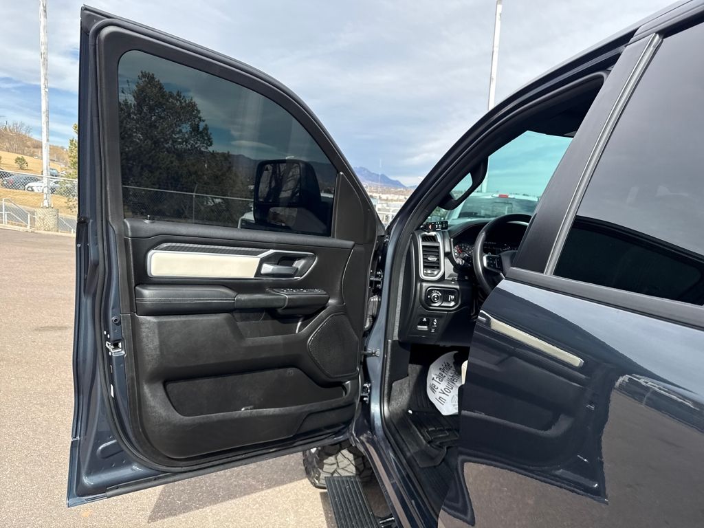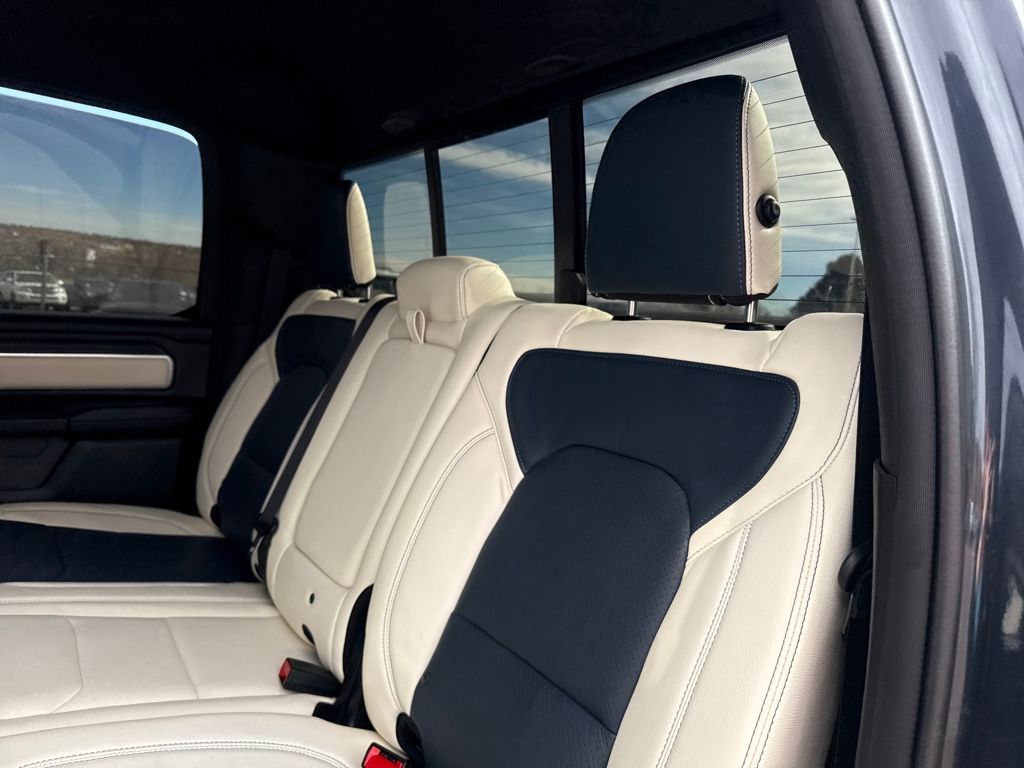 Bed Utility Group (Exterior 115V AC Outlet, MOPAR 4 Adjustable Cargo Tie-Down Hooks, MOPAR Spray In Bedliner, and Pick-Up Box Lighting), Big Horn Level 1 Equipment Group (115V Auxiliary Power Outlet, 2nd Row In Floor Storage Bins, 400W Inverter, Auto Power-Folding Mirrors, Auto-Dimming Exterior Driver Mirror, Auto-Dimming Rear-View Mirror, Black Exterior Mirrors, Black Premium Power Mirrors, Convex Wide-Angle Exterior Mirror Insert, Exterior Mirrors Courtesy Lamps, Exterior Mirrors w/Heating Element, Exterior Mirrors w/Supplemental Signals, Glove Box Lamp, Heated Front Seats, Heated Steering Wheel, Leather Wrapped Steering Wheel, Power 2-Way Driver Lumbar Adjust, Power Adjust 8-Way Driver Seat, Power Adjustable Pedals, Rear Power Sliding Window, Rear Window Defroster, Steering Wheel Mounted Audio Controls, Sun Visors w/Illuminated Vanity Mirrors, and Universal Garage Door Opener), Protection Group (Tow Hooks), Quick Order Package 21Z Big Horn, Trailer Tow Group (Accent Color Tailgate Handle, Black Trailer Tow Power Mirrors, Manual Folding Exterior Mirrors, Manual Telescoping Mirrors, Mirror Clearance/Running Lights, Power-Adjustable Convex Aux Mirrors, Trailer Brake Control, Trailer Reverse Steering Control, Trailer Tire Pressure Monitoring System, and Trailer Tow Mirrors), 3 Rear Seat Head Restraints, 4 Way Front Headrests, 4-Wheel Disc Brakes, 4G LTE Wi-Fi Hot Spot, 6 Speakers, ABS brakes, Air Conditioning, Alloy wheels, AM/FM radio, Apple CarPlay/Android Auto, Auto High-beam Headlights, Brake assist, Bumpers: chrome, Cloth Bench Seat, Compass, Connectivity - US/Canada, Delay-off headlights, Driver door bin, Dual front impact airbags, Dual front side impact airbags, Electronic Stability Control, Front anti-roll bar, Front Center Armrest w/Storage, Front fog lights, Front License Plate Bracket, Front reading lights, Front Seat Back Map Pockets, Front wheel independent suspension, Fully automatic headlights, GPS Antenna Input, Heated door mirrors, Illuminated entry, Integrated Voice Command w/Bluetooth, Low tire pressure warning, Manual Adjust 4-Way Front Passenger Seat, Manufacturer's Statement of Origin, MOPAR Front & Rear Rubber Floor Mats, Occupant sensing airbag, Outside temperature display, Overhead airbag, Overhead console, Panic alarm, ParkView Rear Back-Up Camera, Passenger door bin, Passenger vanity mirror, Power door mirrors, Power steering, Power windows, Radio data system, Radio: Uconnect 5 W w/8.4" Display, RAM Grille Badge - Chrome, Rear 60/40 Folding Seat, Rear anti-roll bar, Rear seat center armrest, Rear step bumper, Remote keyless entry, Speed control, Split folding rear seat, Supplier Part Tracking (J-1), Tachometer, Telescoping steering wheel, Tilt steering wheel, Traction control, Trip computer, USB Host Flip, Variably intermittent wipers, Voltmeter, Wheels: 18" x 8" Cast-Aluminum Painted, and Wheels: 20" x 9" Aluminum Chrome Clad (WRK)