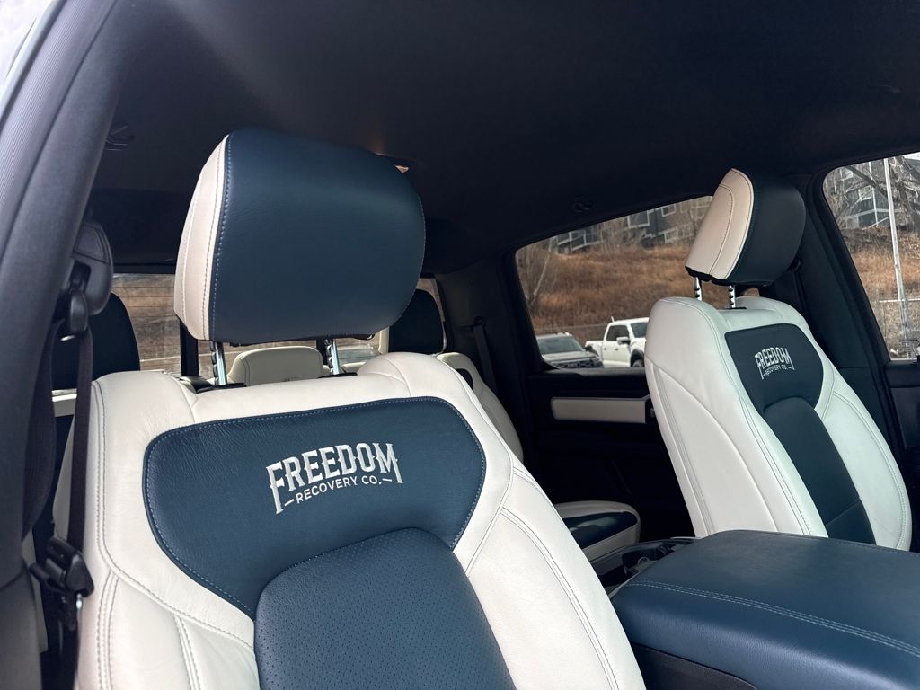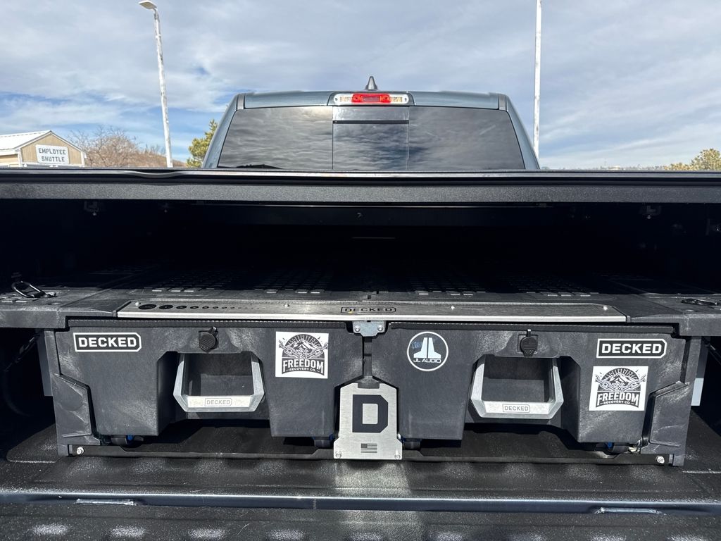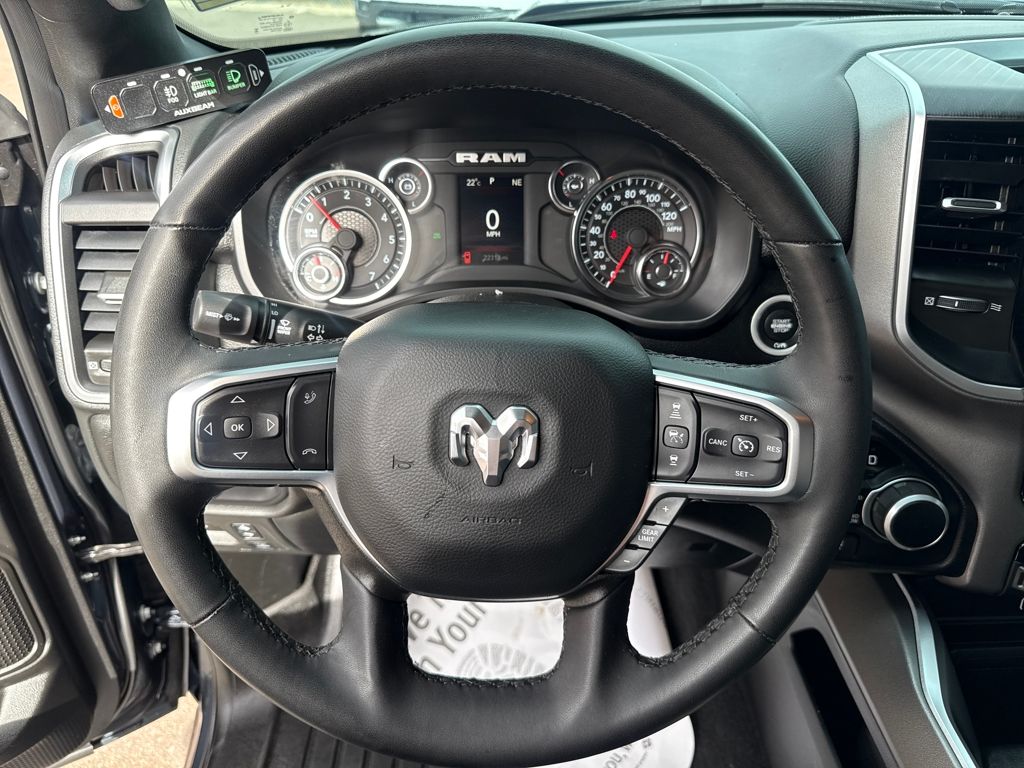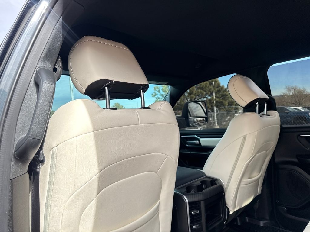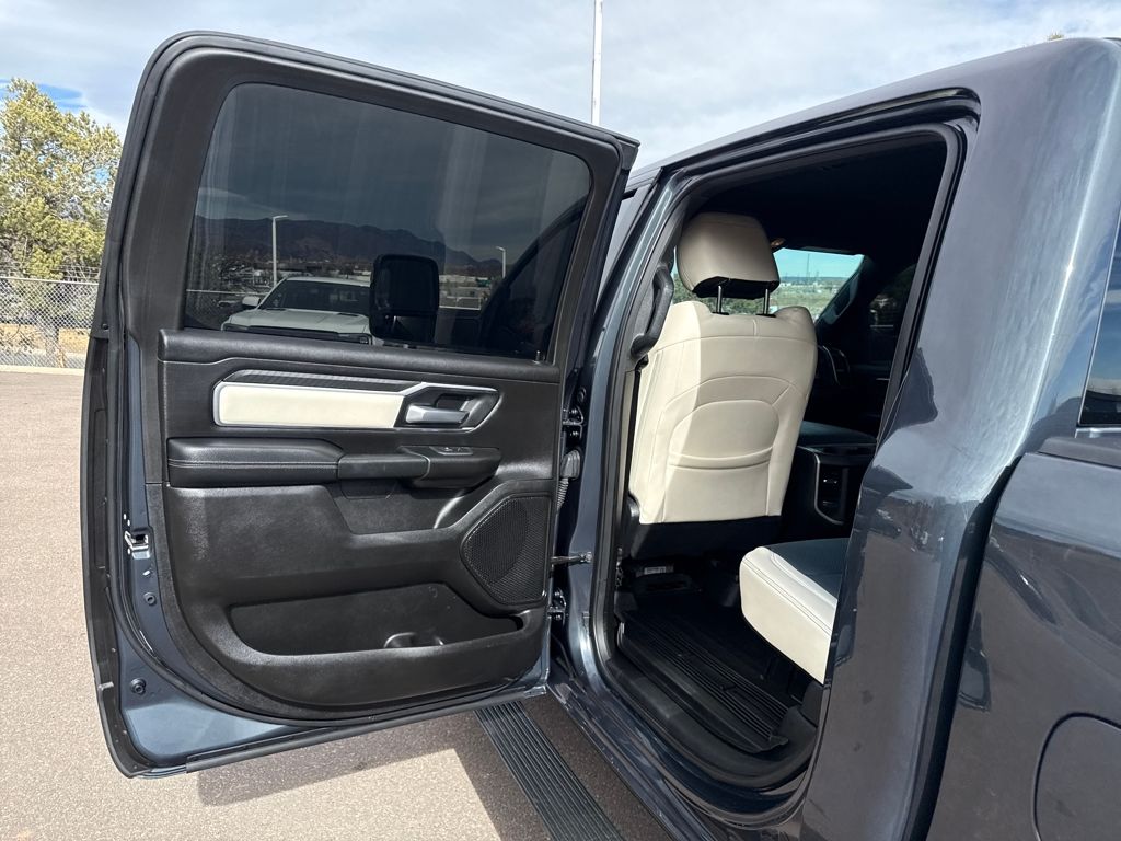 Bed Utility Group (Exterior 115V AC Outlet, MOPAR 4 Adjustable Cargo Tie-Down Hooks, MOPAR Spray In Bedliner, and Pick-Up Box Lighting), Big Horn Level 1 Equipment Group (115V Auxiliary Power Outlet, 2nd Row In Floor Storage Bins, 400W Inverter, Auto Power-Folding Mirrors, Auto-Dimming Exterior Driver Mirror, Auto-Dimming Rear-View Mirror, Black Exterior Mirrors, Black Premium Power Mirrors, Convex Wide-Angle Exterior Mirror Insert, Exterior Mirrors Courtesy Lamps, Exterior Mirrors w/Heating Element, Exterior Mirrors w/Supplemental Signals, Glove Box Lamp, Heated Front Seats, Heated Steering Wheel, Leather Wrapped Steering Wheel, Power 2-Way Driver Lumbar Adjust, Power Adjust 8-Way Driver Seat, Power Adjustable Pedals, Rear Power Sliding Window, Rear Window Defroster, Steering Wheel Mounted Audio Controls, Sun Visors w/Illuminated Vanity Mirrors, and Universal Garage Door Opener), Protection Group (Tow Hooks), Quick Order Package 21Z Big Horn, Trailer Tow Group (Accent Color Tailgate Handle, Black Trailer Tow Power Mirrors, Manual Folding Exterior Mirrors, Manual Telescoping Mirrors, Mirror Clearance/Running Lights, Power-Adjustable Convex Aux Mirrors, Trailer Brake Control, Trailer Reverse Steering Control, Trailer Tire Pressure Monitoring System, and Trailer Tow Mirrors), 3 Rear Seat Head Restraints, 4 Way Front Headrests, 4-Wheel Disc Brakes, 4G LTE Wi-Fi Hot Spot, 6 Speakers, ABS brakes, Air Conditioning, Alloy wheels, AM/FM radio, Apple CarPlay/Android Auto, Auto High-beam Headlights, Brake assist, Bumpers: chrome, Cloth Bench Seat, Compass, Connectivity - US/Canada, Delay-off headlights, Driver door bin, Dual front impact airbags, Dual front side impact airbags, Electronic Stability Control, Front anti-roll bar, Front Center Armrest w/Storage, Front fog lights, Front License Plate Bracket, Front reading lights, Front Seat Back Map Pockets, Front wheel independent suspension, Fully automatic headlights, GPS Antenna Input, Heated door mirrors, Illuminated entry, Integrated Voice Command w/Bluetooth, Low tire pressure warning, Manual Adjust 4-Way Front Passenger Seat, Manufacturer's Statement of Origin, MOPAR Front & Rear Rubber Floor Mats, Occupant sensing airbag, Outside temperature display, Overhead airbag, Overhead console, Panic alarm, ParkView Rear Back-Up Camera, Passenger door bin, Passenger vanity mirror, Power door mirrors, Power steering, Power windows, Radio data system, Radio: Uconnect 5 W w/8.4" Display, RAM Grille Badge - Chrome, Rear 60/40 Folding Seat, Rear anti-roll bar, Rear seat center armrest, Rear step bumper, Remote keyless entry, Speed control, Split folding rear seat, Supplier Part Tracking (J-1), Tachometer, Telescoping steering wheel, Tilt steering wheel, Traction control, Trip computer, USB Host Flip, Variably intermittent wipers, Voltmeter, Wheels: 18" x 8" Cast-Aluminum Painted, and Wheels: 20" x 9" Aluminum Chrome Clad (WRK)