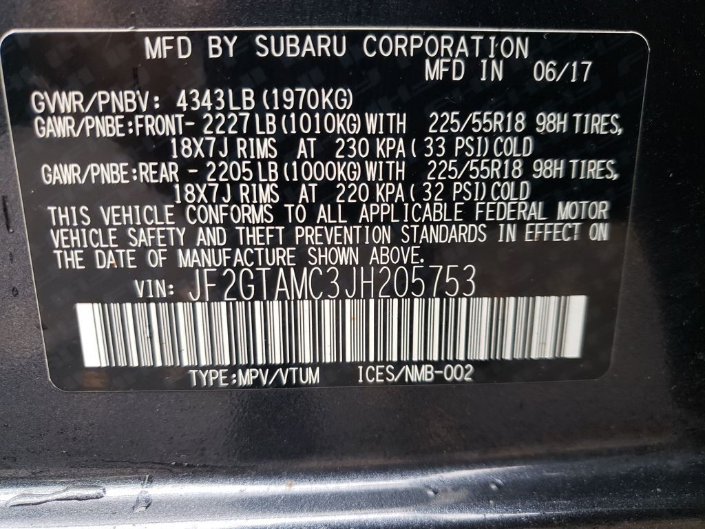 - Front tires: 225/55HR18.0