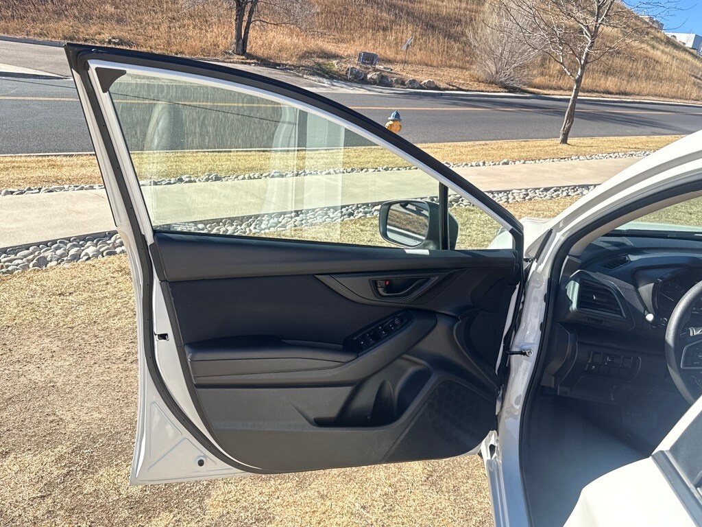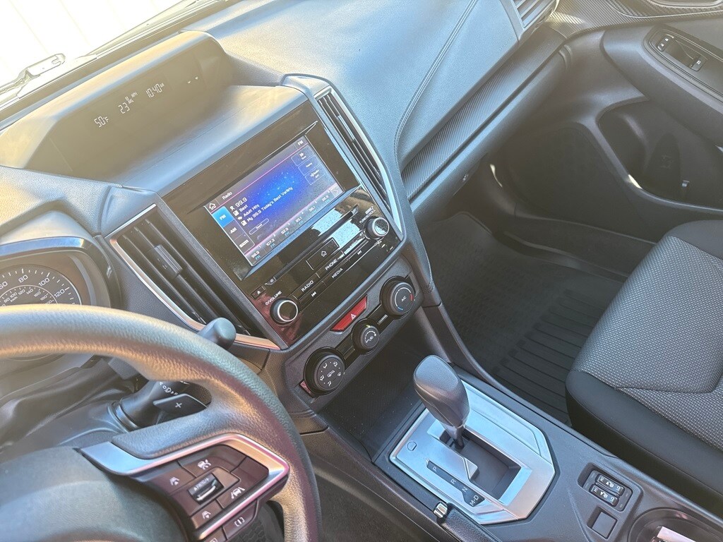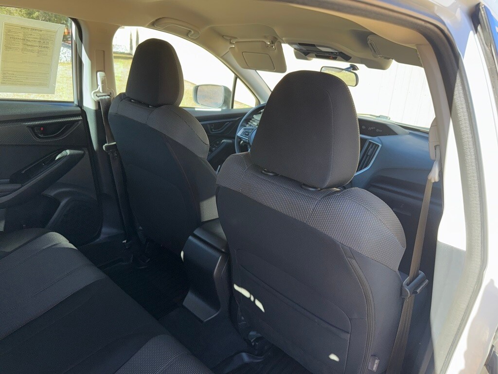 Standard Model, 4-Wheel Disc Brakes, 6 Speakers, ABS brakes, Air Conditioning, Alloy wheels, AM/FM radio: SiriusXM, Anti-whiplash front head restraints, Brake assist, Bumpers: body-color, CD player, Cloth Upholstery, Delay-off headlights, Driver door bin, Driver vanity mirror, Dual front impact airbags, Dual front side impact airbags, Electronic Stability Control, Emergency communication system, Exterior Parking Camera Rear, Four wheel independent suspension, Front anti-roll bar, Front Bucket Seats, Front Center Armrest, Front fog lights, Front reading lights, Fully automatic headlights, Heated door mirrors, Heated Front Bucket Seats, Heated front seats, Illuminated entry, Knee airbag, Low tire pressure warning, Occupant sensing airbag, Outside temperature display, Overhead airbag, Overhead console, Panic alarm, Passenger door bin, Passenger vanity mirror, Power door mirrors, Power steering, Power windows, Radio data system, Radio: Subaru STARLINK 6.5" Multimedia Plus System, Rear anti-roll bar, Rear window defroster, Rear window wiper, Remote keyless entry, Security system, Speed control, Speed-sensing steering, Split folding rear seat, Spoiler, STARLINK/Apple CarPlay/Android Auto, Steering wheel mounted audio controls, Tachometer, Telescoping steering wheel, Tilt steering wheel, Traction control, Trip computer, Variably intermittent wipers, and Wheels: 16" x 6.5" Machine Finish J Aluminum-Alloy.