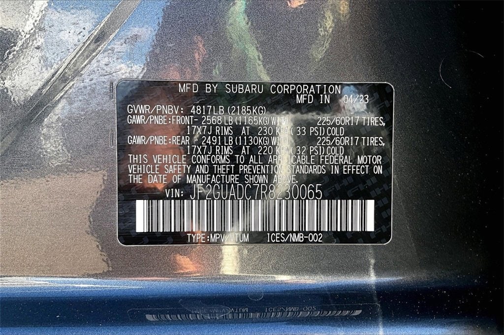 - Pedestrian detection : EyeSight Pre-Collision Braking pedestrian impact prevention