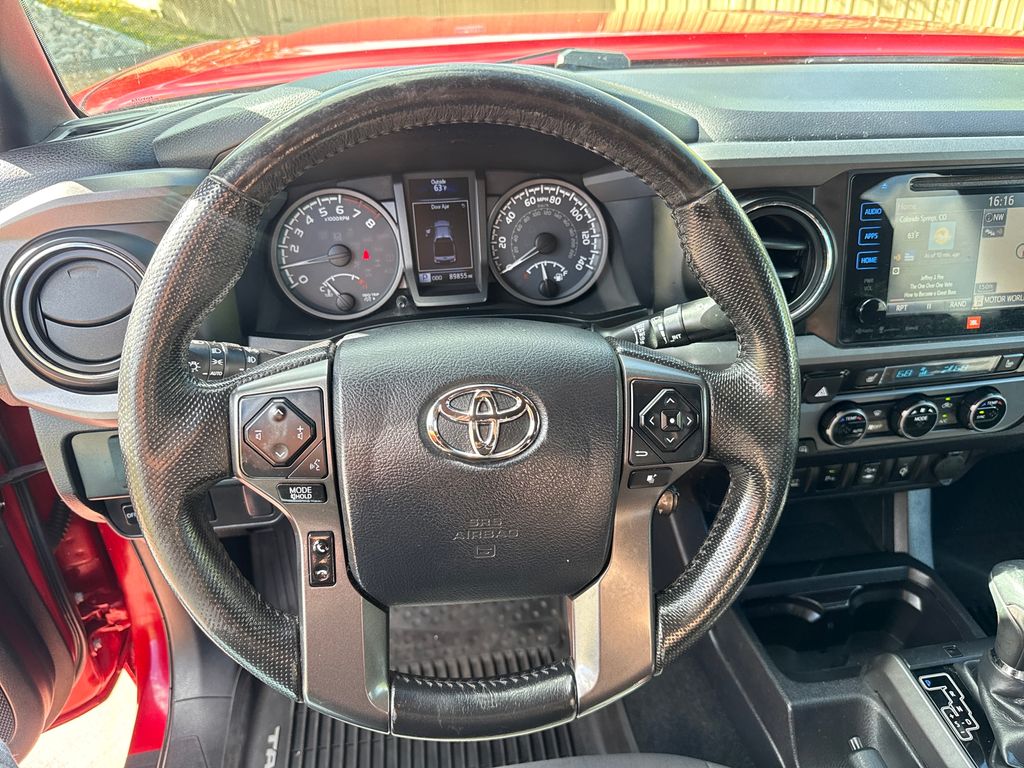 Premium & Technology Package w/JBL Audio (Radio: Entune Premium JBL AM/FM/CD w/Nav & App Ste), Towing Package, TRD Off Road Package (OC) (Cruise Control and Off Road Tuned Suspension), 4WD, 115V/400W Deck Powerpoint, 6 Speakers, ABS brakes, Air Conditioning, Alloy wheels, AM/FM radio: SiriusXM, Anti-whiplash front head restraints, Auto-dimming Rear-View mirror, Axle Ratio: 3.91, Brake assist, Bumpers: body-color, Carpet Floor Mats (PPO), CD player, Compass, Door Sill Protectors, Driver door bin, Dual front impact airbags, Dual front side impact airbags, Electronic Stability Control, Exterior Parking Camera Rear, Fabric Seat Trim (FD), Front anti-roll bar, Front Bucket Seats, Front Center Armrest, Front fog lights, Front reading lights, Front wheel independent suspension, Illuminated entry, Knee airbag, Leather Shift Knob, Low tire pressure warning, Navigation System, Occupant sensing airbag, Outside temperature display, Overhead airbag, Overhead console, Panic alarm, Passenger door bin, Power door mirrors, Power steering, Power windows, Radio: Entune Premium w/AM/FM/CD/Nav/App Suite, Rear step bumper, Remote keyless entry, Security system, Speed control, Speed-sensing steering, Split folding rear seat, Steering wheel mounted audio controls, Tachometer, Telescoping steering wheel, Tilt steering wheel, Traction control, Trip computer, Turn signal indicator mirrors, Variable Intermittent Wipers, Variably intermittent wipers, and Wheels: 16" x 7" Machined Contrast Alloy.