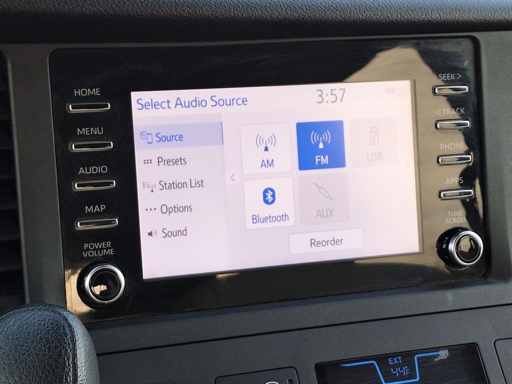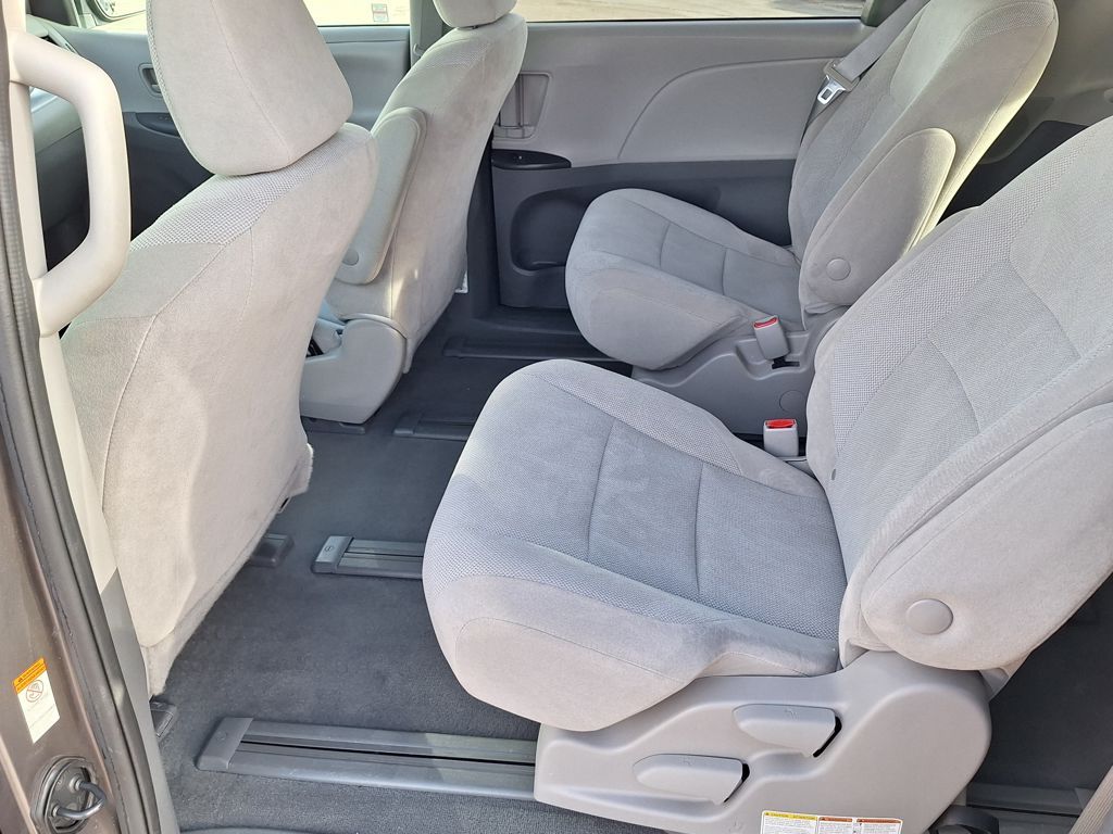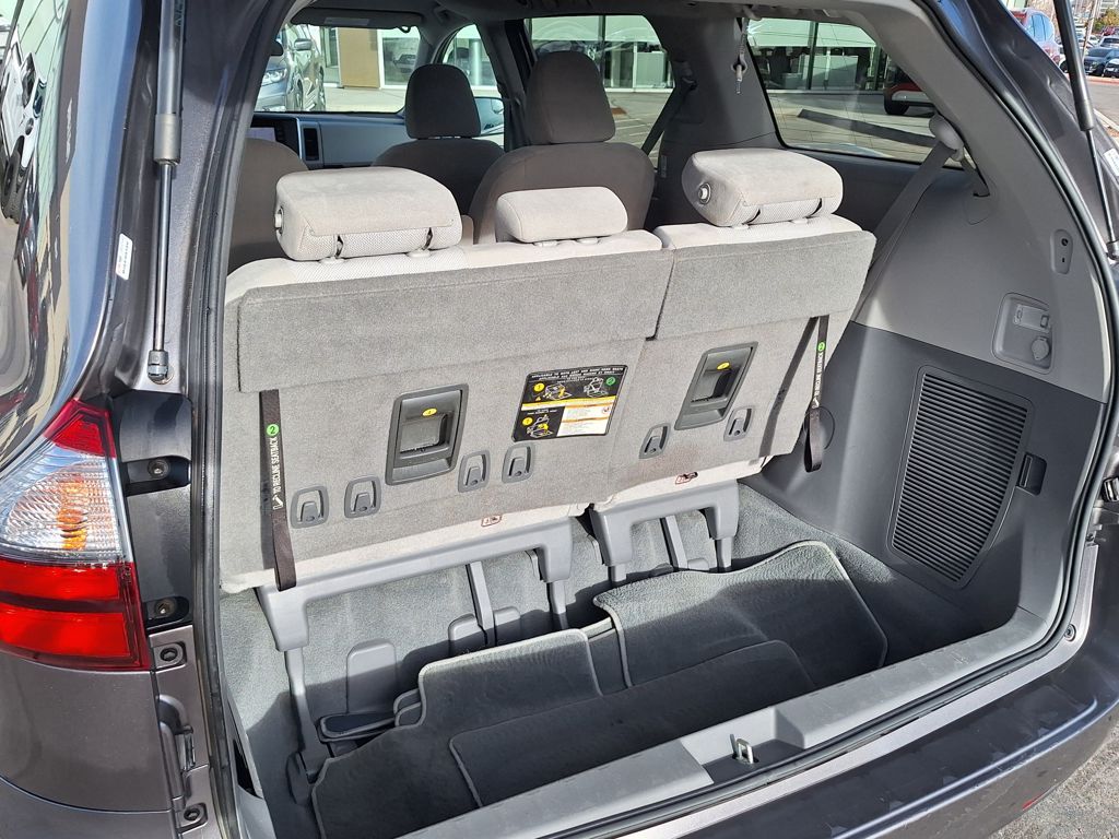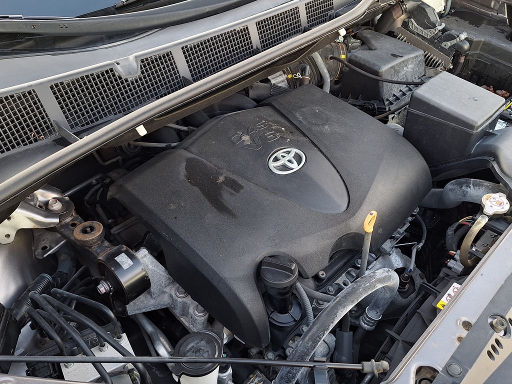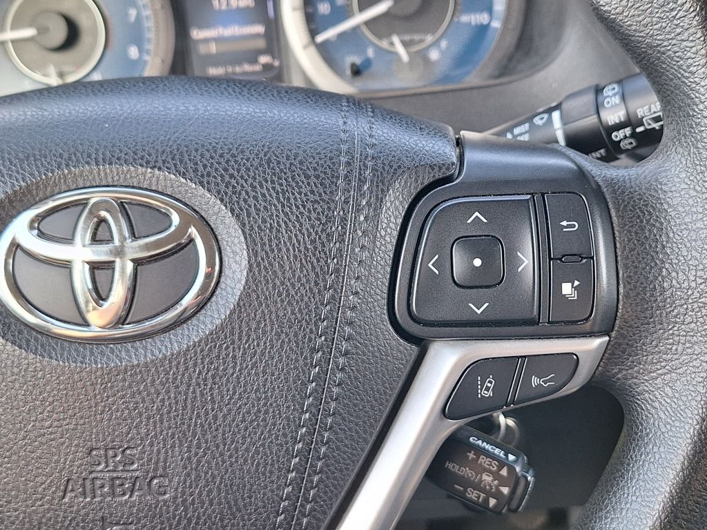 17" 5-Spoke Alloy Wheels, 3rd row seats: split-bench, 4-Wheel Disc Brakes, 6 Speakers, ABS brakes, Air Conditioning, Alloy wheels, AM/FM radio, Apple CarPlay, Auto High-beam Headlights, Automatic temperature control, Axle Ratio: 3.003, Brake assist, Bumpers: body-color, Delay-off headlights, Driver door bin, Driver vanity mirror, Driver's Seat Mounted Armrest, Dual front impact airbags, Dual front side impact airbags, Electronic Stability Control, Exterior Parking Camera Rear, Fabric Seat Material, Front anti-roll bar, Front Bucket Seats, Front dual zone A/C, Front reading lights, Front wheel independent suspension, Fully automatic headlights, Illuminated entry, Knee airbag, Low tire pressure warning, Occupant sensing airbag, Overhead airbag, Overhead console, Panic alarm, Passenger door bin, Passenger seat mounted armrest, Passenger vanity mirror, Power door mirrors, Power steering, Power windows, Radio data system, Radio: Entune 3.0 Audio w/App Suite, Rear air conditioning, Rear anti-roll bar, Rear reading lights, Rear window defroster, Rear window wiper, Reclining 3rd row seat, Remote keyless entry, Speed control, Speed-sensing steering, Split folding rear seat, Spoiler, Steering wheel mounted audio controls, Tachometer, Telescoping steering wheel, Tilt steering wheel, Traction control, and Variably intermittent wipers.