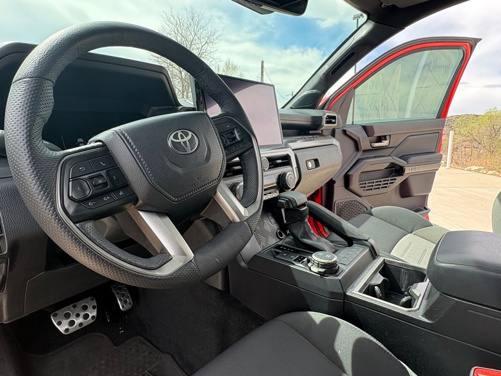 TRD SPORT UPGRADE PACKAGE Integrated Trailer Brake Controller, multi-information display (MID) screen and trailer brake type, gain and manual trailer brake output controls, Deck Storage Box, Heated Leather-Trimmed Steering Wheel, Qi-Compatible Wireless Charging, Power Horizontal Rear Window, 120V/400W AC Power Inverter, Heated Front Seats, Front & Rear Parking Assist w/Automatic Braking, Digital Key Capability, Digital key enables smartphone to be used instead of a physical key (Remote Connect subscription required), JBL Premium Audio, 10 speakers w/JBL FLEX portable Bluetooth® speaker, subwoofer and amplifier, Pre-Wired Auxiliary Switches, 8-Way Power Driver & Passenger Seat Adjusters, Deck DC Power Pre-wire, TILT & SLIDE SUNROOF & MOONROOF, RADIO: 14 TOYOTA AUDIO MULTIMEDIA (EF) touchscreen, wireless Apple CarPlay® and Android Auto® compatibility and SiriusXM w/3-month Platinum Plan trial subscription, See toyota.com/audio-multimedia for details. Toyota TRD Sport with Solar Octane exterior and BOULDER/BLACK (SMOKE SILV interior features a 4 Cylinder Engine with 278 HP at 6000 RPM*.