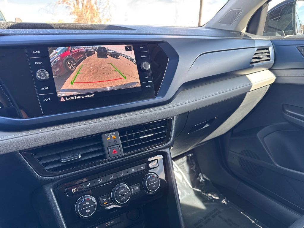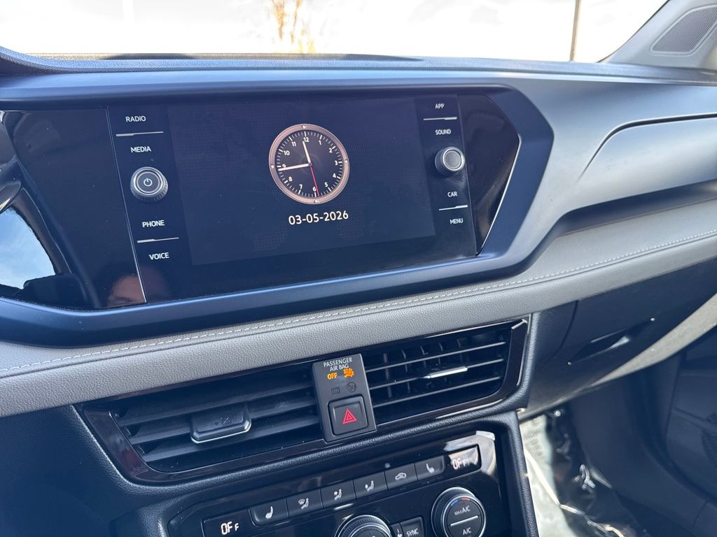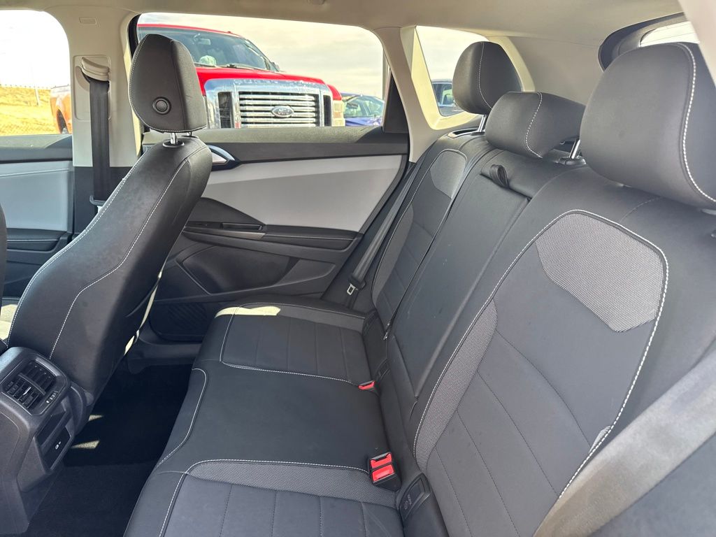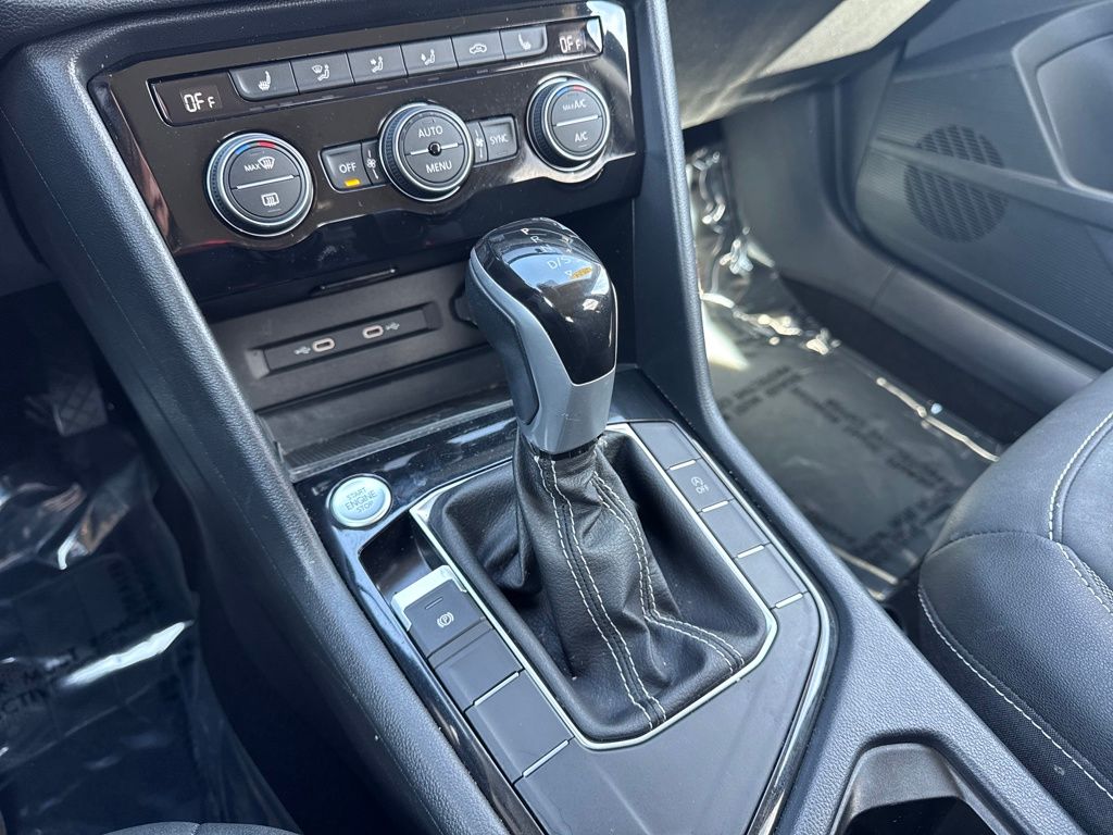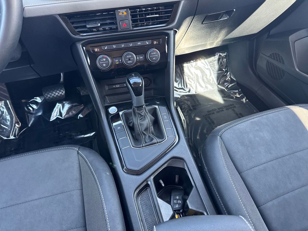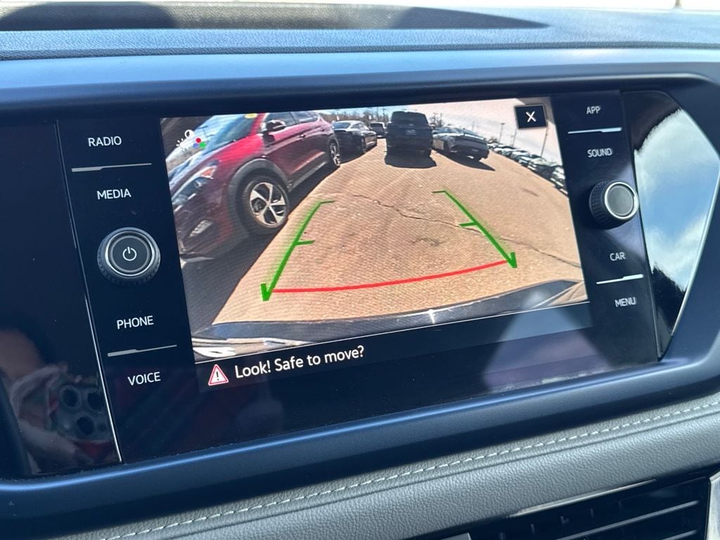 3.23 Axle Ratio, 4-Wheel Disc Brakes, 6 Speakers, ABS brakes, Active Blind Spot Monitor, Air Conditioning, Alloy wheels, AM/FM radio: SiriusXM with 360L, Auto High-beam Headlights, Automatic temperature control, Brake assist, Bumpers: body-color, CloudTex & Cloth Seating Surfaces, Compass, Delay-off headlights, Driver door bin, Driver vanity mirror, Dual front impact airbags, Dual front side impact airbags, Electronic Stability Control, Emergency communication system: VW Car-Net Safe & Secure 5-year, Exterior Parking Camera Rear, Front anti-roll bar, Front Bucket Seats, Front Center Armrest, Front dual zone A/C, Front reading lights, Front Strut Rear Torsion Beam Suspension, Front wheel independent suspension, Fully automatic headlights, Heated door mirrors, Heated Front Bucket Seats, Heated front seats, Heated steering wheel, Illuminated entry, Leather Shift Knob, Low tire pressure warning, Occupant sensing airbag, Outside temperature display, Overhead airbag, Overhead console, Panic alarm, Passenger door bin, Passenger vanity mirror, Power door mirrors, Power driver seat, Power steering, Power windows, Radio data system, Radio: MIB3 Composition Media AM/FM/HD, Rain sensing wipers, Rear anti-roll bar, Rear seat center armrest, Rear window defroster, Rear window wiper, Remote keyless entry, Roof rack: rails only, Security system, Speed control, Speed-sensing steering, Split folding rear seat, Spoiler, Steering wheel mounted audio controls, Tachometer, Telescoping steering wheel, Tilt steering wheel, Traction control, Trip computer, Variably intermittent wipers, and Wheels: 18" 2-Tone Machined Alloy.