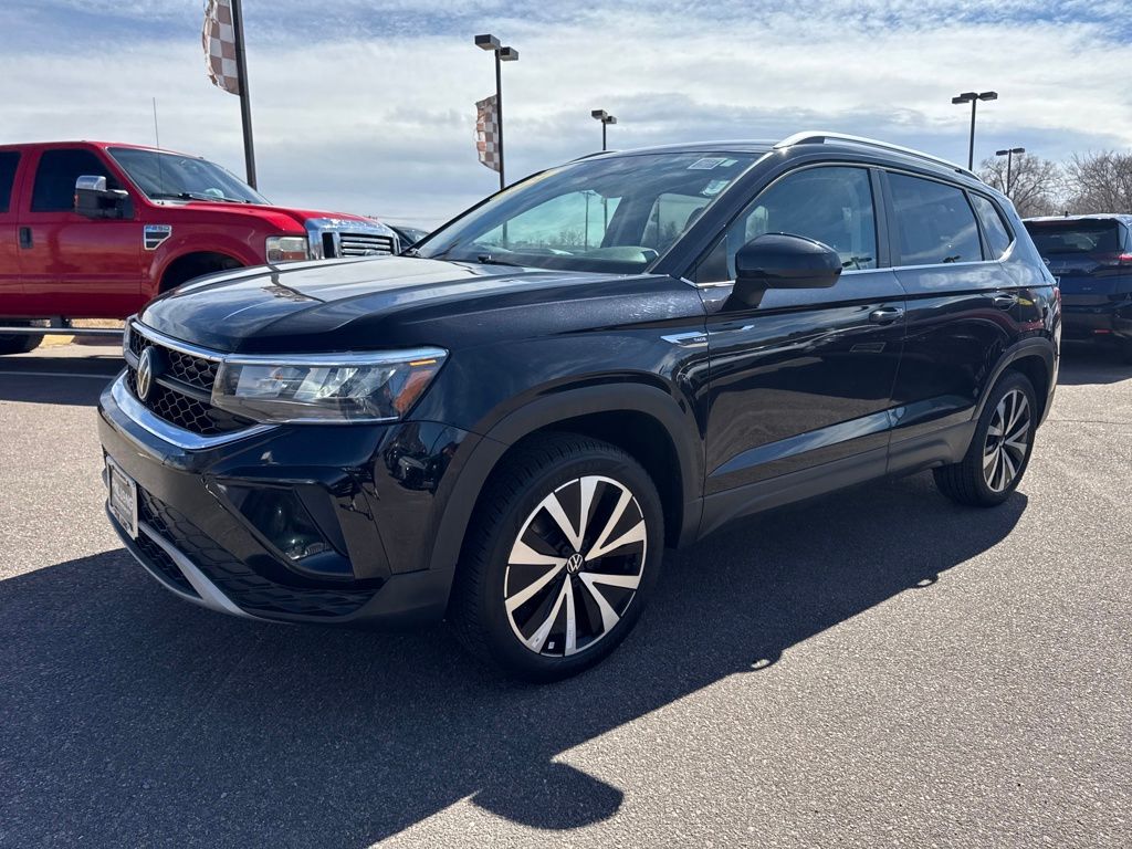Black 2024 Volkswagen Taos 1.5T SE FWD 8-Speed Automatic with Tiptronic 1.5L I4 Turbocharged DOHC 16V LEV3-SULEV30 158hp 28/36 City/Highway MPG